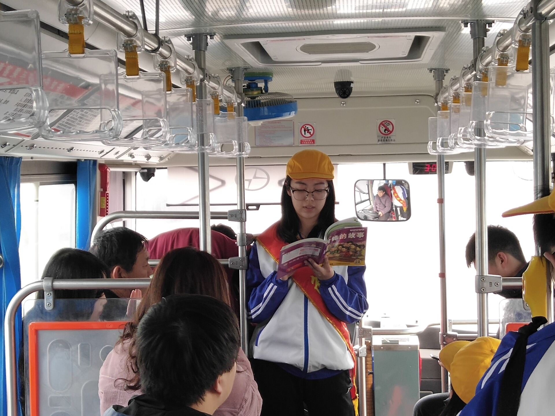 活动中,同学们在公交车上还进行了宣讲,讲述了身边的好人好事,与乘客们分享了感人肺腑的新时代雷锋精神和事迹。为营造和谐、温馨的社会环境,传递了道德正能量。