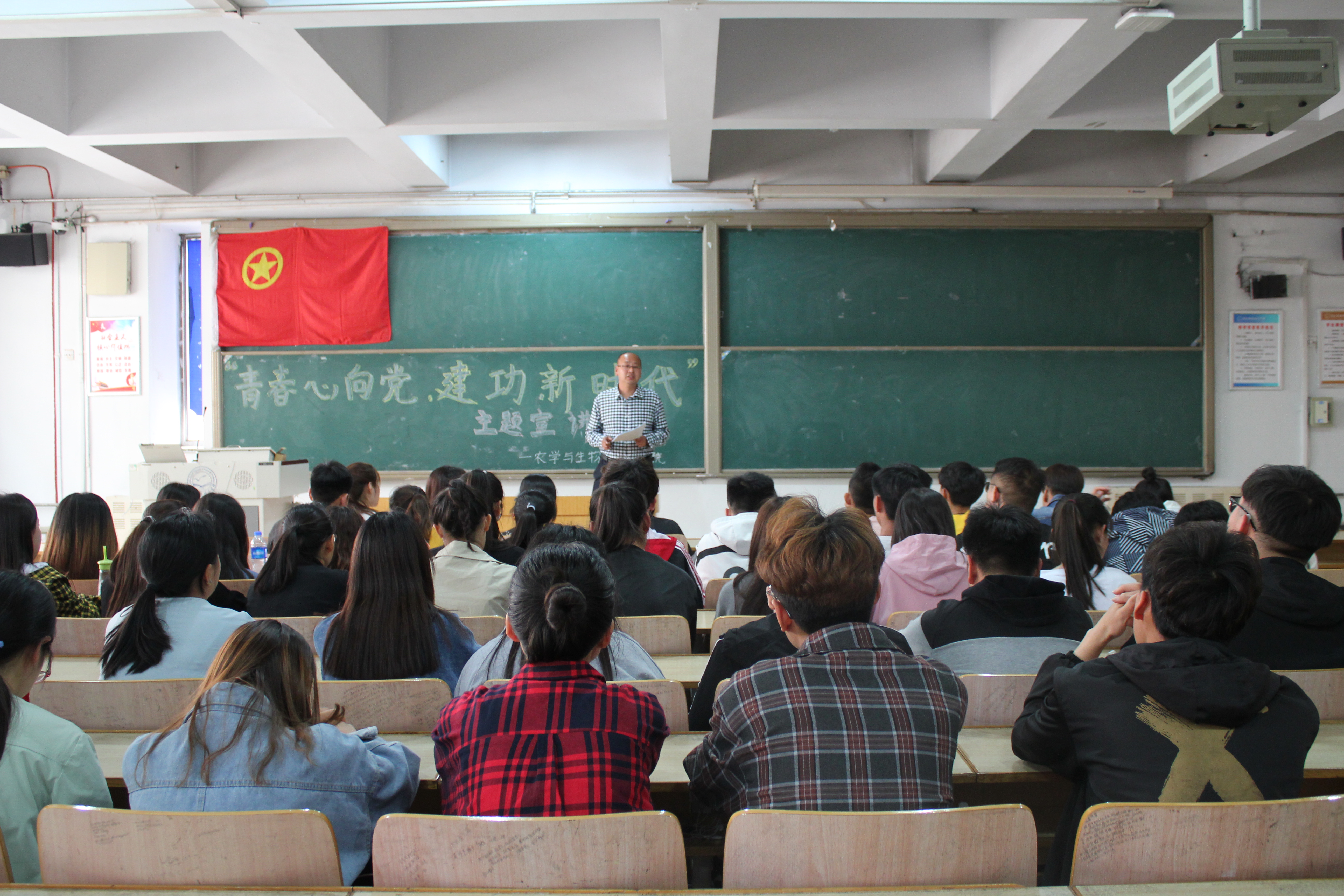 5月8日,学院团委组织举办了以“青春心向党·建功新时代”为主题的纪念五四运动100周年理论宣讲会。学院团委负责人重点围绕《讲话》精神、习近平新时代中国特色社会主义思想、青年榜样故事等内容进行了辅导和宣讲。约100名团学骨干参加了学习活动。