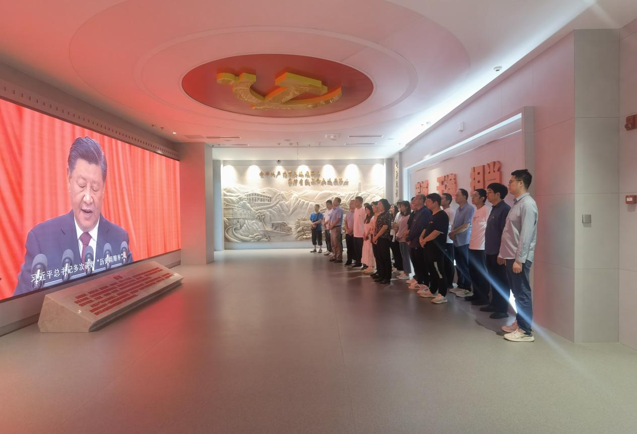在五峰山李大钊革命活动旧址,全体党员干部参观了革命先烈展览墙,在李大钊塑像前重温入党誓词,接受党性和初心的洗礼,在党纪学习教育的浓厚氛围中,深刻地感悟到了革命先驱奋勇斗争的精神伟力。