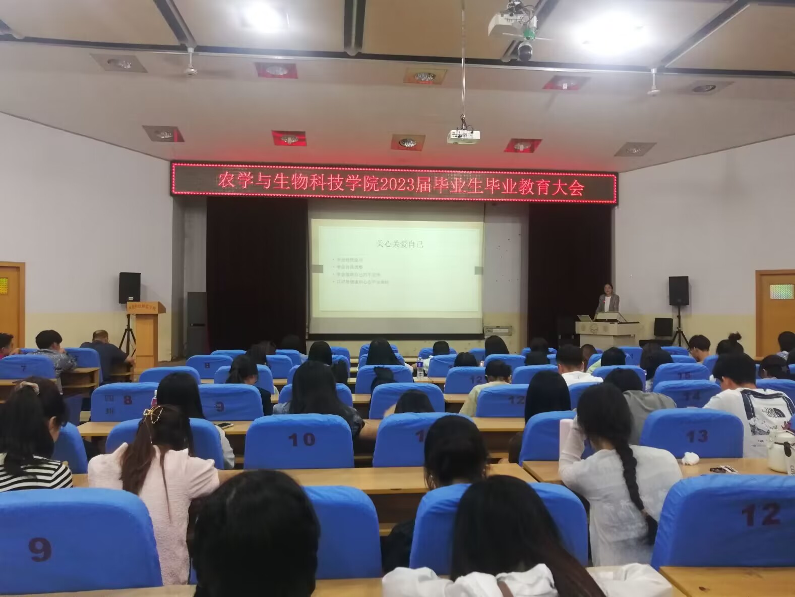 为了使公司毕业生顺利完成毕业前各项工作,安全离校,2023年5月30日,sunbet申搏在昌黎校区学术报告厅召开了2023届毕业生毕业教育大会,学院领导、学工办老师、毕业班辅导员(班主任)以及全体研究生、本科毕业生近250余人参加了会议。